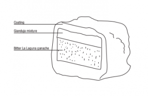 Gör såhär: Smält samman kakaopastan och giandujan. Låt mixen värmas till 30°C och sprita sedan ovanpå ganachen i dina formar.