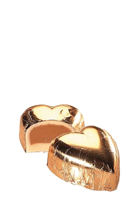- Hjärta med hasselnötspraliné och vit choklad (guldfolie)