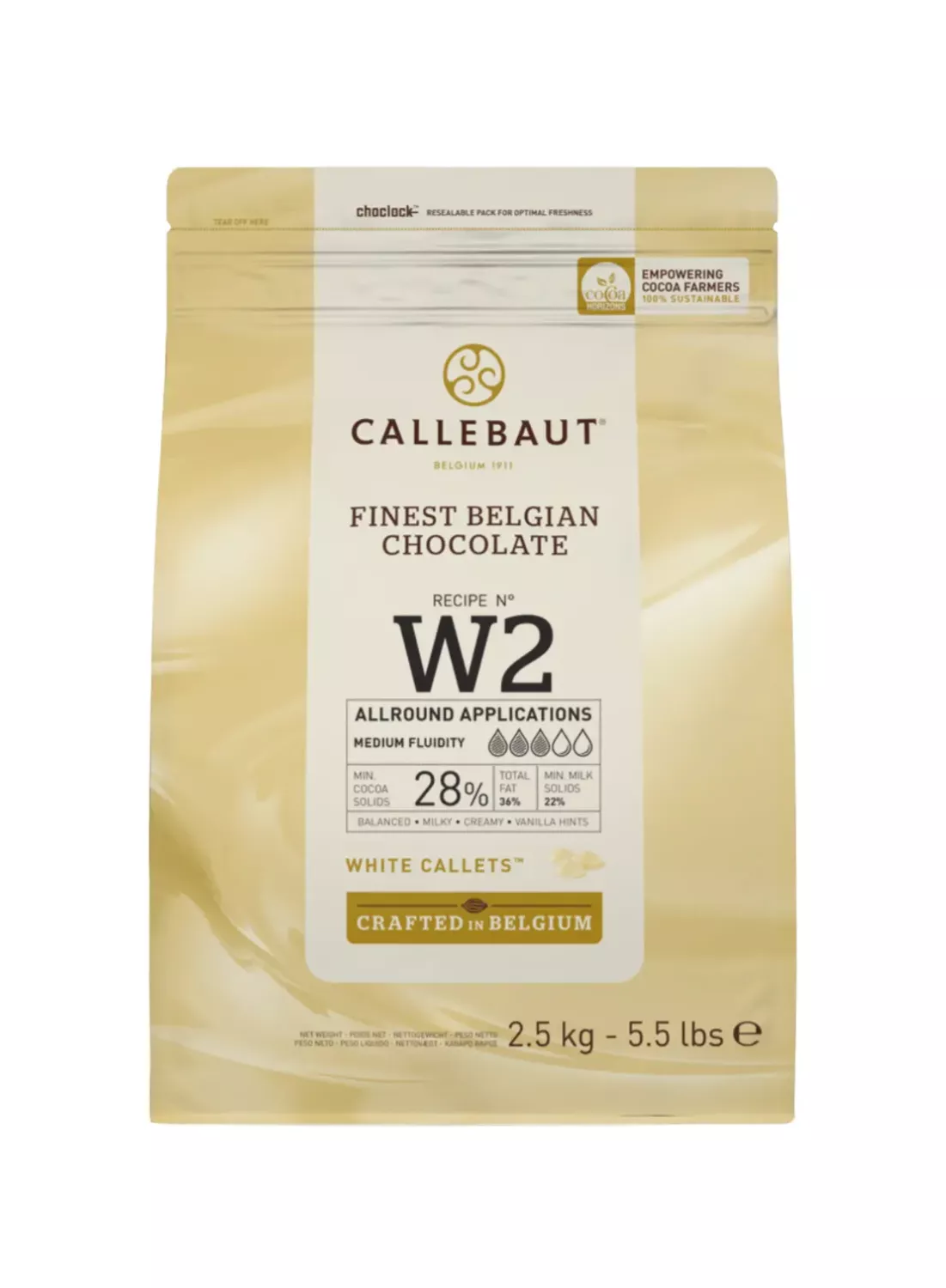 Callebaut W2 Vit Choklad har en balanserad smak som gör den användbar för en mängd olika användningsområden och är även lätt att arbeta med.