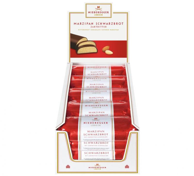 Den mest hängivna marsipanälskaren kanske alltid borde ha ett marsipanbröd i väskan? In case of emergency, så att säga... I så fall föreslår vi denna klassiker i lite större storlek, med marsipan av bästa slag från Lübeck och ett tunt lager mörk choklad. Likadana marsipanbröd finns i flera olika storlekar.