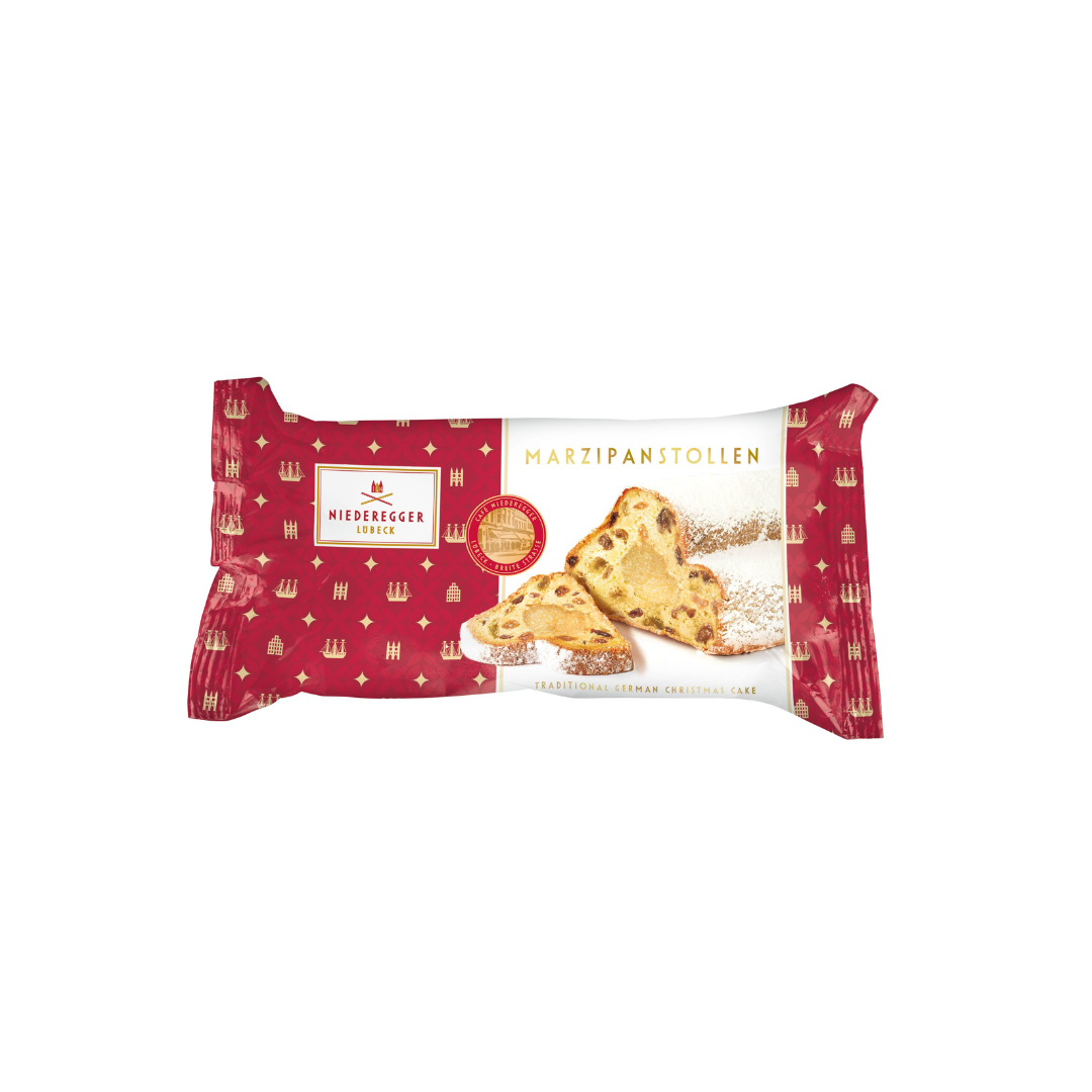 En julklassiker i praktiskt miniformat! Denna saftiga Mini Stollen är fylld med aromatiska russin, smördeg och äkta Niederegger-marsipan – omsorgsfullt bakad och pudrad med florsocker. Perfekt till glöggen, fikastunden eller som liten gåva. En bästsäljare under hela julsäsongen!